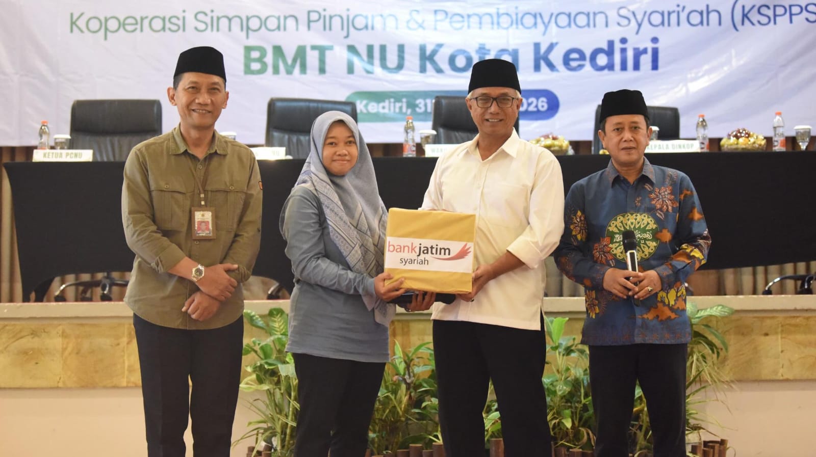 “Atas nama Pemerintah Kota Kediri, kami menyampaikan apresiasi kepada seluruh pengurus, pengawas, serta anggota BMT NU yang terus menjaga komitmen koperasi sebagai wadah pemberdayaan ekonomi umat. Kita patut bersyukur dan memberikan apresiasi atas perkembangan KSPPS BMT NU Kota Kediri yang sangat menggembirakan,” ujarnya.