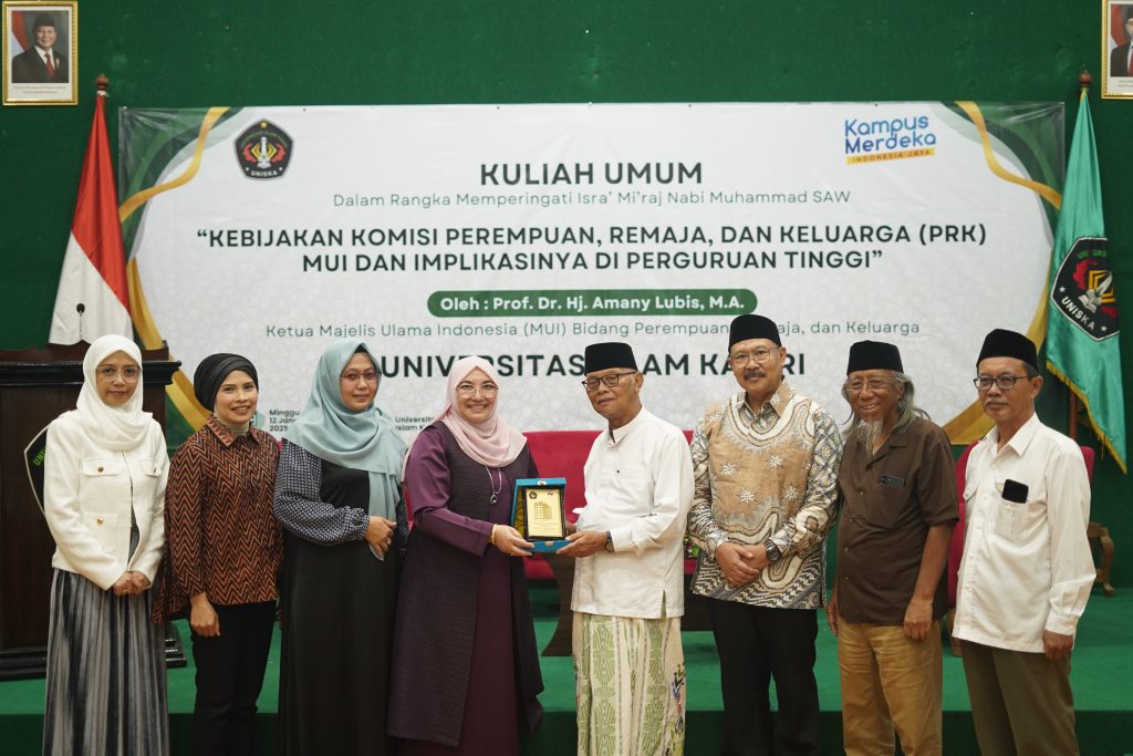 Kediri,JuKe.co.id – Dalam rangka memperingati Isra’ Miraj Nabi Muhammad SAW, Universitas Islam Kadiri (UNISKA) menyelenggarakan kuliah umum yang bertajuk “Kebijakan Komisi Perempuan, Remaja, dan Keluarga MUI dan Implikasinya di Perguruan Tinggi.” Acara yang berlangsung pada Minggu, 12 Januari 2025, di Auditorium UNISKA ini menghadirkan pembicara utama Prof. Dr. Hj. Amany Lubis, MA, yang saat ini menjabat sebagai Ketua Majelis Ulama Indonesia (MUI) bidang Perempuan, Remaja, dan Keluarga.Acara ini dihadiri oleh segenap sivitas akademika UNISKA Kediri.