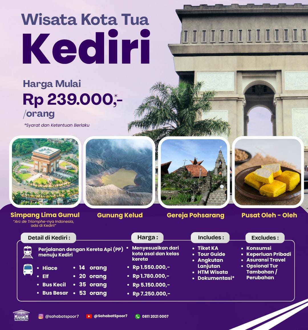 “Rail Tour Jawa Timur” telah menyiapkan serangkaian paket wisata menarik yang siap membawa wisatawan menjelajahi kekayaan kota-kota menawan, di antaranya: