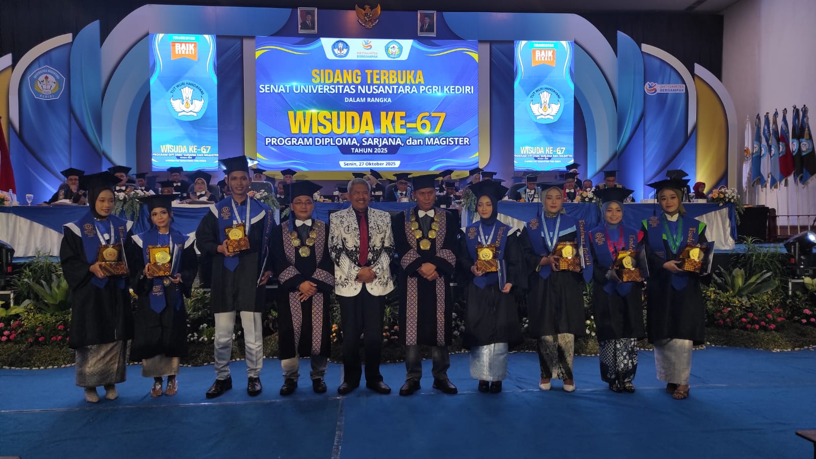 Kediri,JuKe.co.id – Suasana haru dan bangga menyelimuti Sidang Terbuka Senat Universitas Nusantara PGRI (UNP) Kediri dalam rangka Wisuda ke-67 Program Diploma, Sarjana, dan Magister Tahun 2025 di Hotel Insumo Kediri, Senin (27/10/2025).
