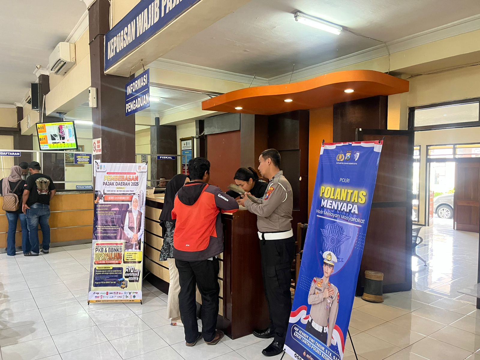“Dengan Polantas Menyapa, Polri ingin membuktikan bahwa polisi bisa menjadi pengayom dan mitra masyarakat.lokasi Samsat Kediri Kota ini merupakan pusat pelayanan bagi masyarakat atau wajib pajak di wilayah Hukum Polres Kediri Kota, Kami ingin masyarakat merasa nyaman dan percaya terhadap pelayanan kami,” pungkas AKP Afandy (ant)
