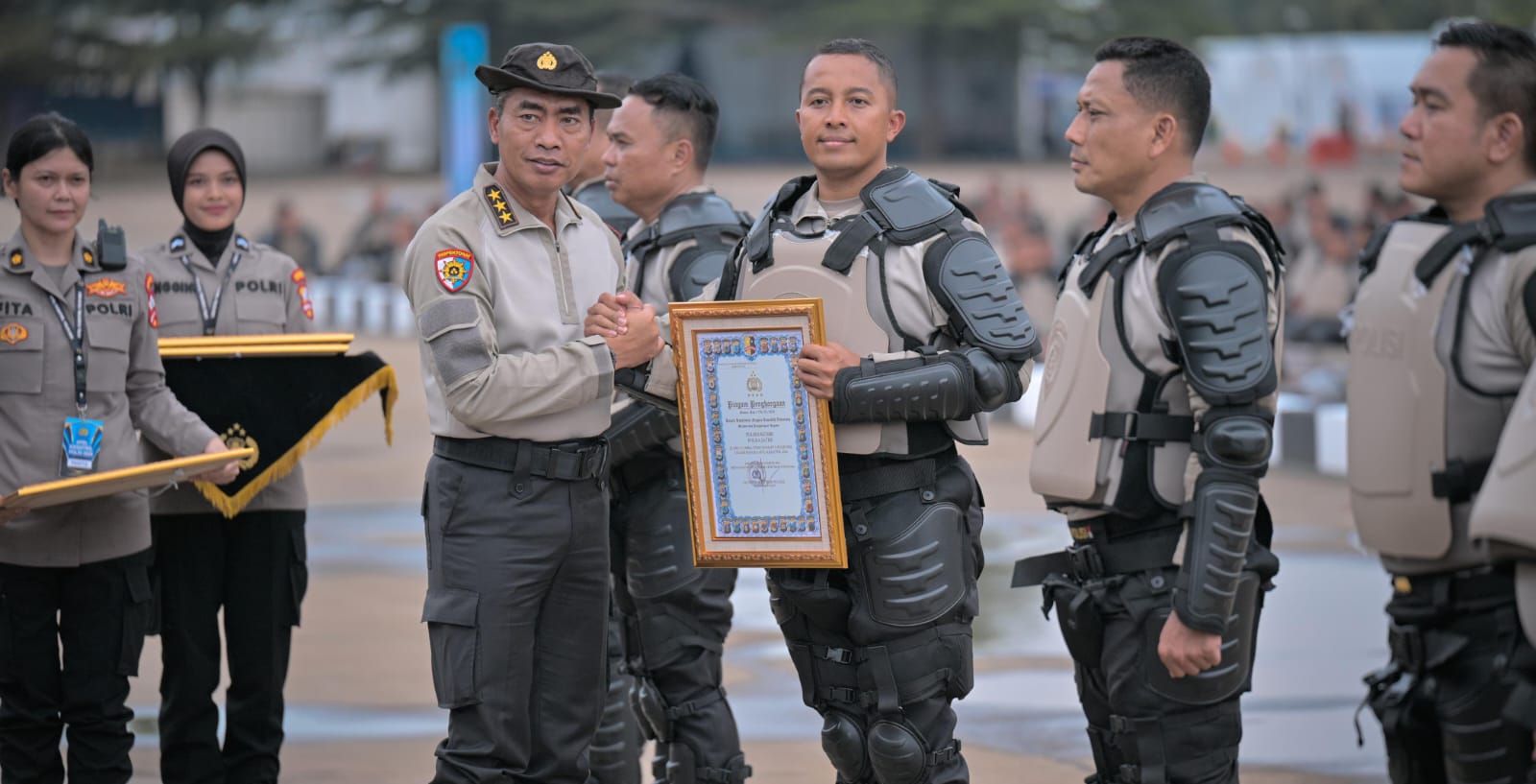 Penyerahan penghargaan dilakukan pada sesi Penutupan Apel Kasatwil Polri 2025, usai simulasi pengamanan unjuk rasa serta latihan pengendalian massa yang diikuti oleh seluruh Kapolres se-Indonesia di lapangan Nagara Yanottama Mako Satlat Korbrimob Polri Cikeas Kec. Gunung Putri Kab. Bogor.